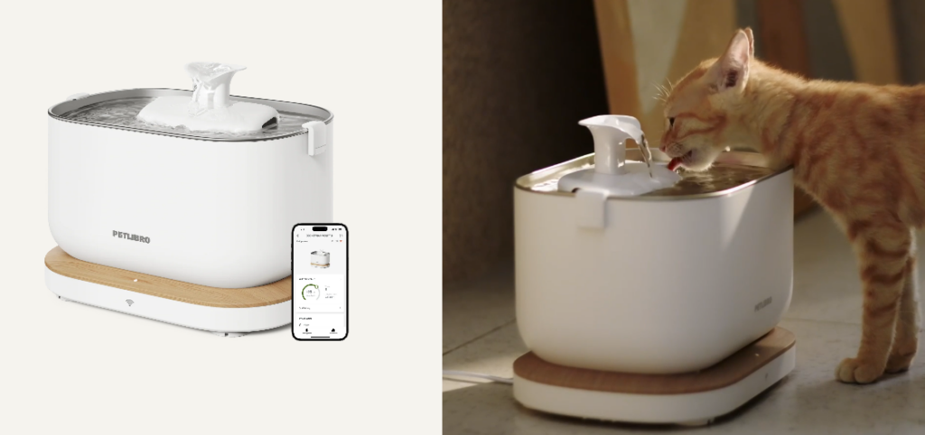 This is a smart water fountain that tracks how much your cat or dog drinks. It sounds simple because it is simple, but knowing your pet’s water intake can catch health problems early. Kidney issues, diabetes, and urinary problems often show up as changes in drinking patterns before other symptoms appear. We asked a veterinarian about this, and she confirmed: detailed water consumption data helps with faster diagnoses. The fountain tracks daily, monthly, and yearly patterns, and when something changes, you notice.