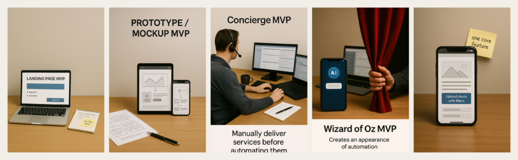 The Landing Page MVP tests demand before you build anything substantial. You create a simple page describing your solution. Add a sign-up form or a “pre-order” button. Drive traffic to it through ads or social media. If people aren’t interested enough to leave their email, they won’t be interested enough to pay for your product later. This approach costs almost nothing. But it tells you everything about market demand. Buffer.com started this way, validating their social media scheduling tool with just a landing page before writing any code.